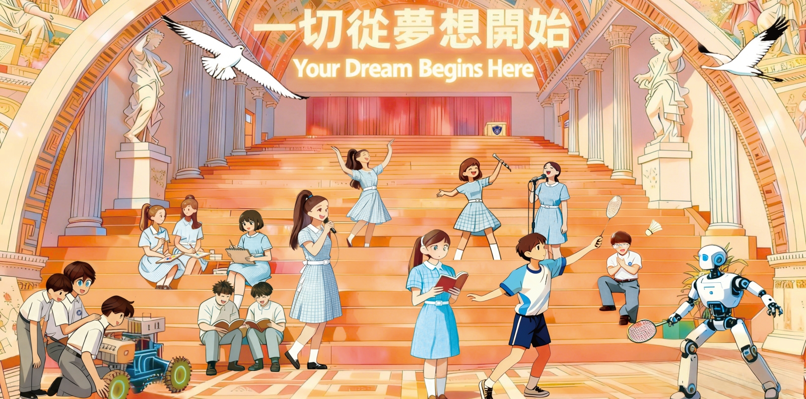This year, our school theme — “The Sky of Pak Sha” — carries a deep symbolic meaning. It represents the spirit of every Pak Sha’s member: to face challenges without fear, to stay strong amid the winds of change, and to move forward with perseverance and grace. Our two school mascots — the White Crane and the Seagull — beautifully embody the essence of that spirit.
