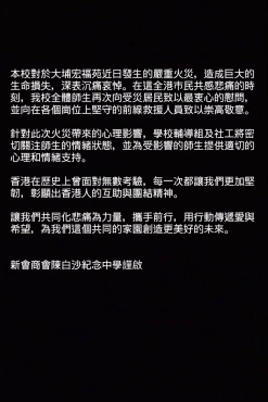 新會商會陳白沙紀念中學對大埔宏福苑火災之聲明