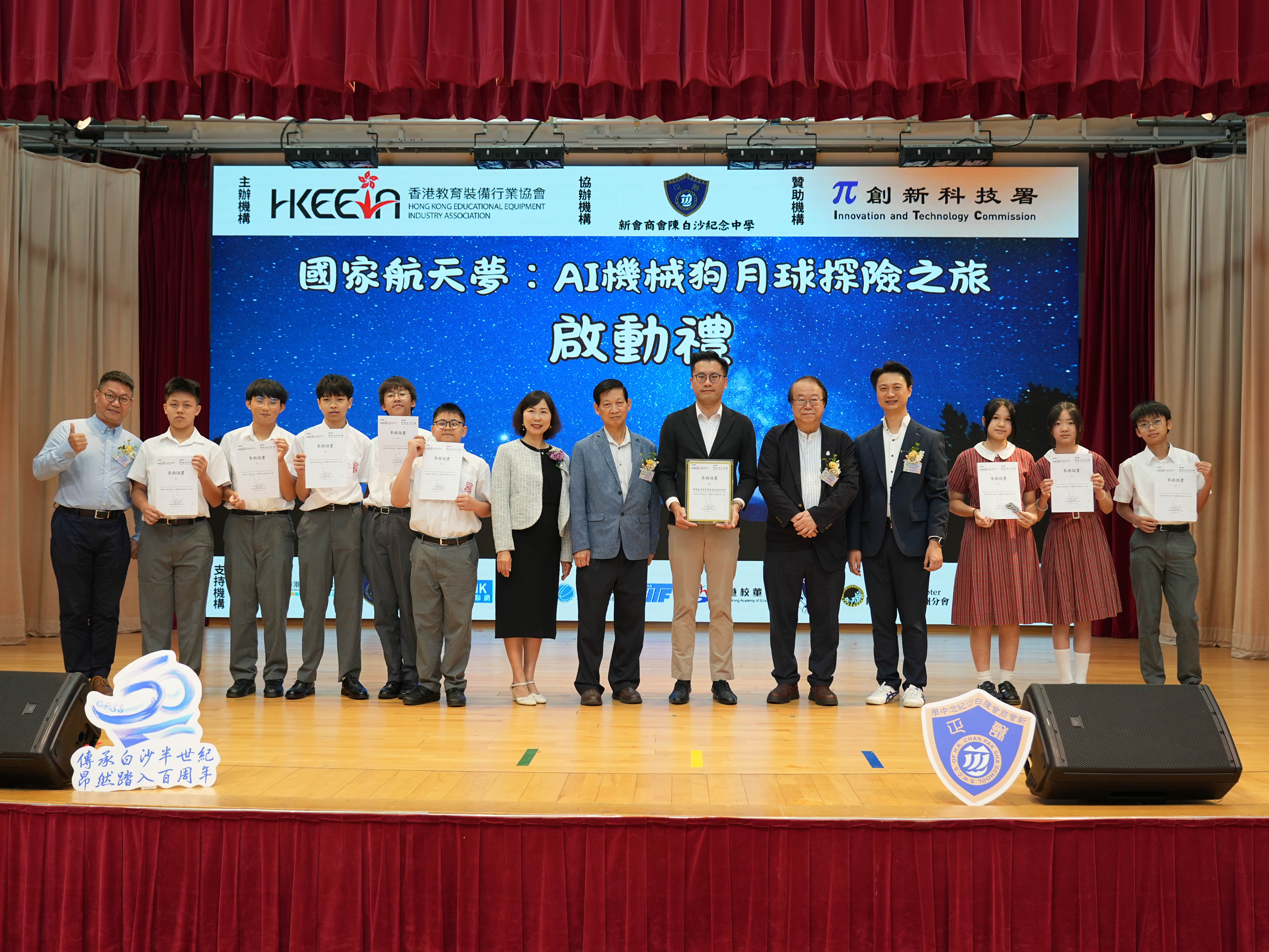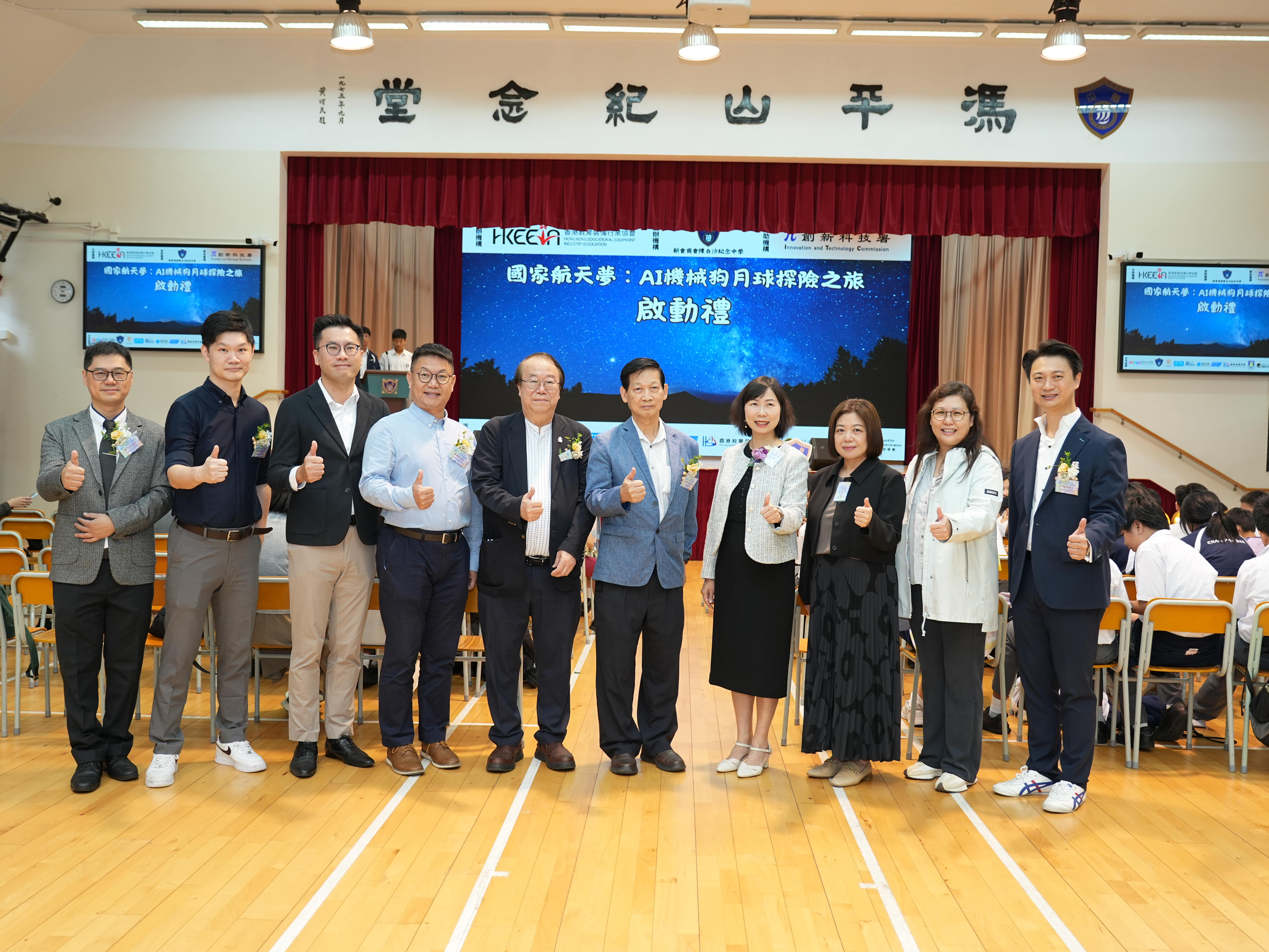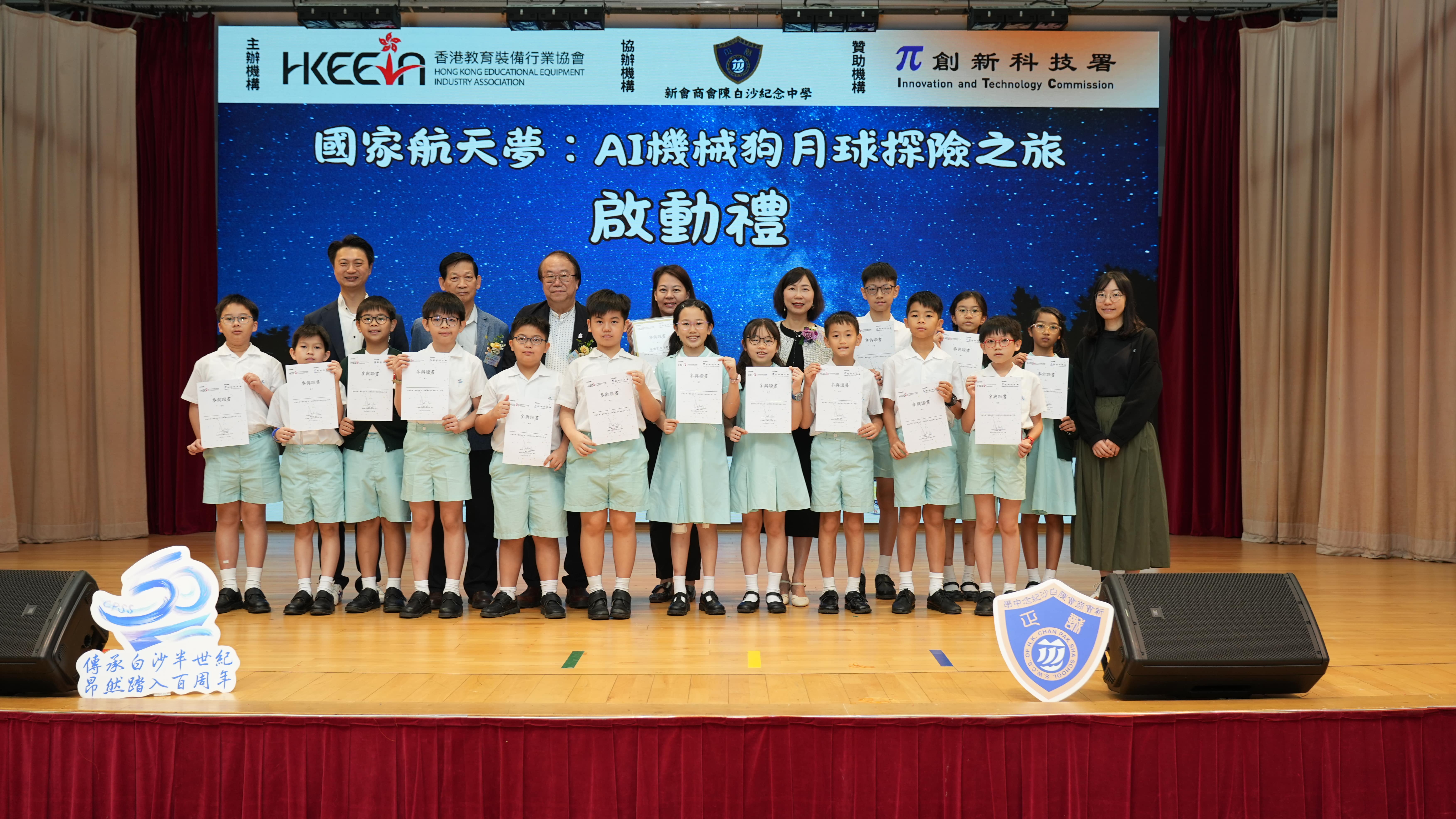 The "National Space Dream: AI Robotic Dog Lunar Exploration Journey" Launch Ceremony was successfully held on 1st November. Organized by the Hong Kong Education Equipment Industry Association and co-organized by our school, with support from the Innovation and Technology Commission, the event gathered many distinguished guests. Key participants included Principal Chan, Dr. Lam Kin Wah, Chairperson of the Hong Kong Academy of School Managers and Dr. Wan Kai Yin, President of the Hong Kong Education Equipment Industry Association. The school extends thanks to all participating organizations for making the ceremony a success, and looks forward to future cooperation in pursuing the space dream.
