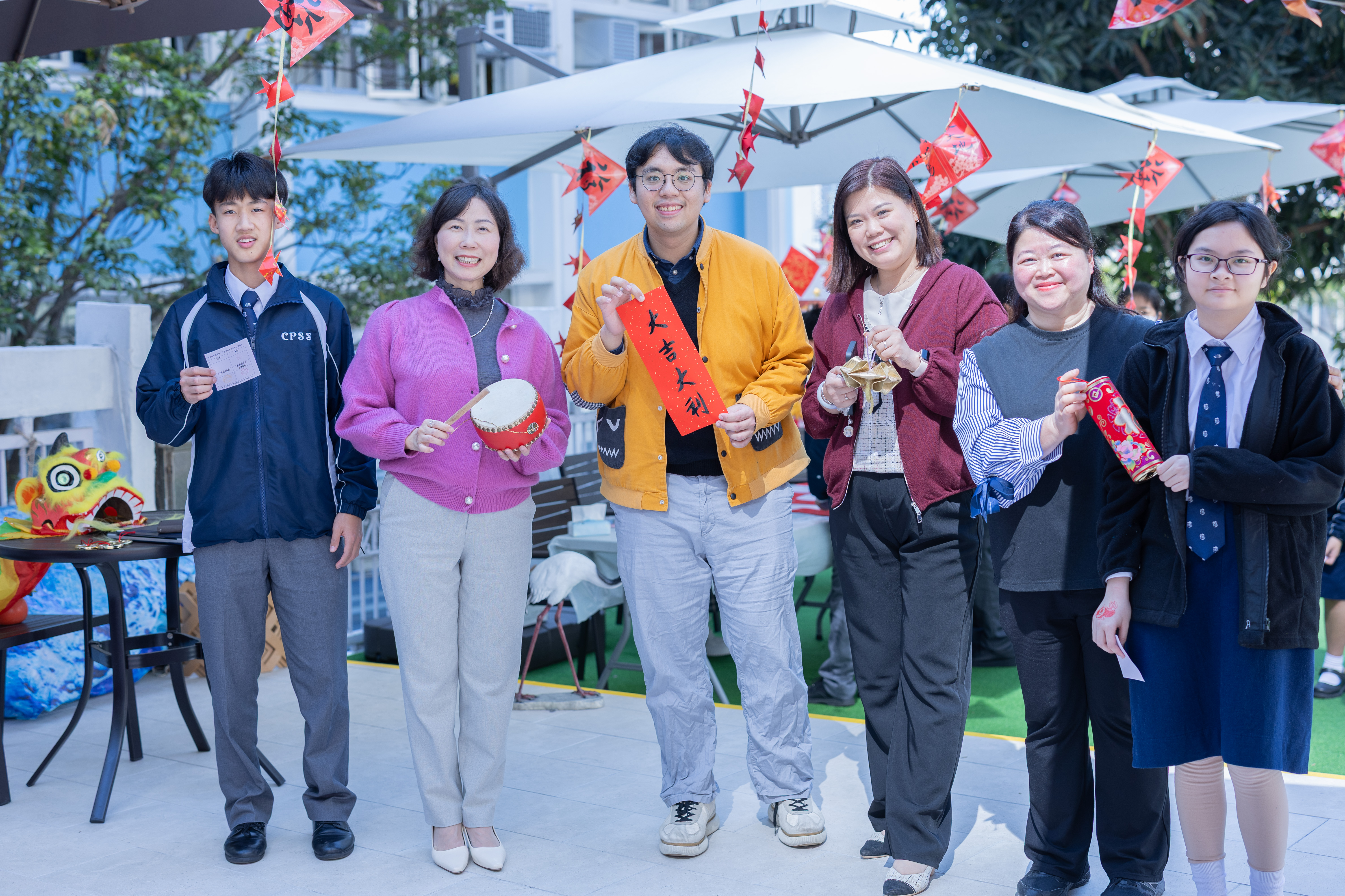 新春將至,為讓學生於課餘放鬆心情,感受中國傳統節日喜慶,中文科於澄心園及眾師堂舉辦了「喜迎新春好年華」活動,設多個攤位遊戲,包括揮春拓印、新春面繪、投壺射箭等,讓學生透過遊戲增加對中華文化的了解;同時準備了哈哈笑口棗、步步高升年糕等賀年小吃。同學踴躍投入,師生同樂,現場氣氛熱鬧,更吸引街坊駐足,喜氣盈盈。