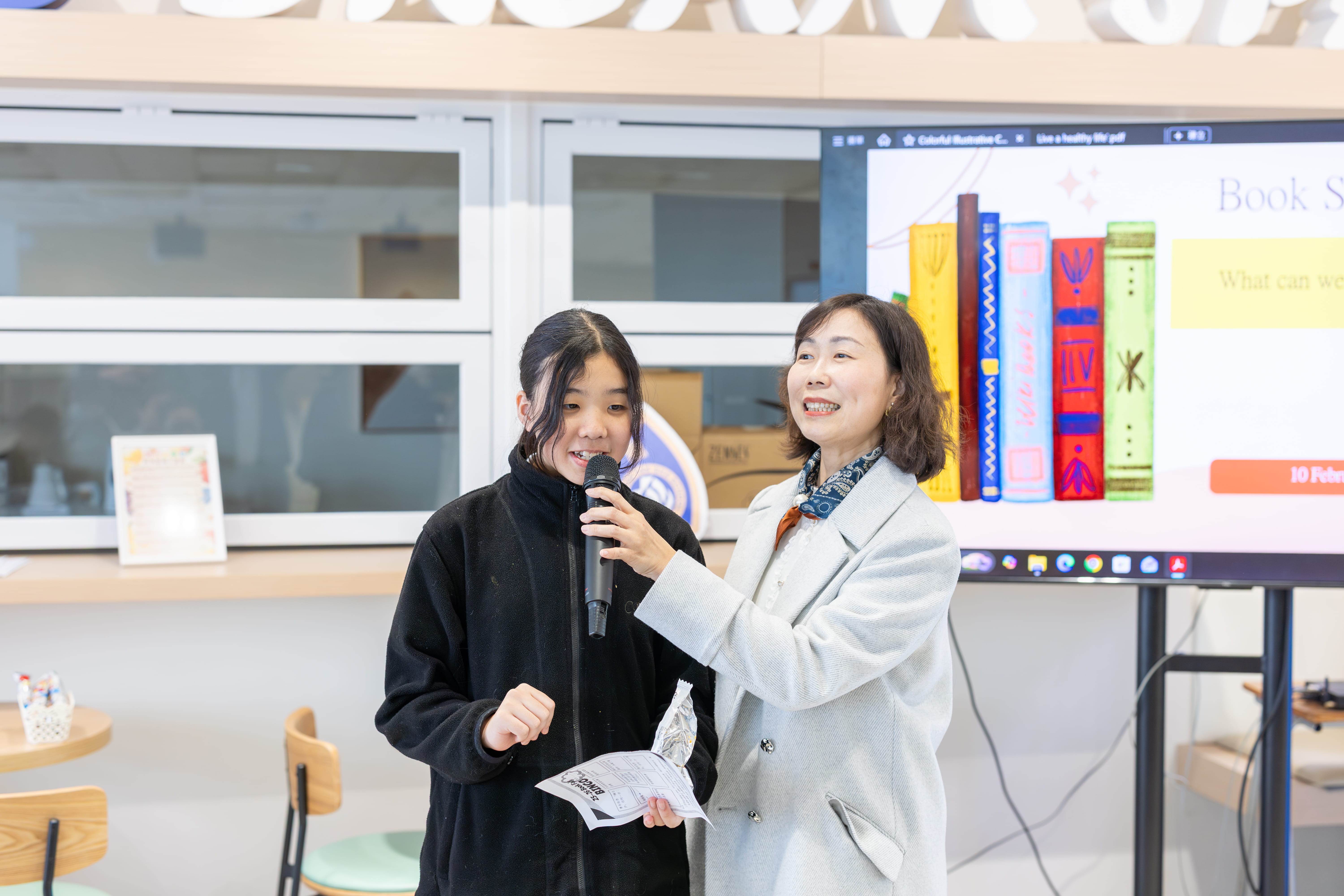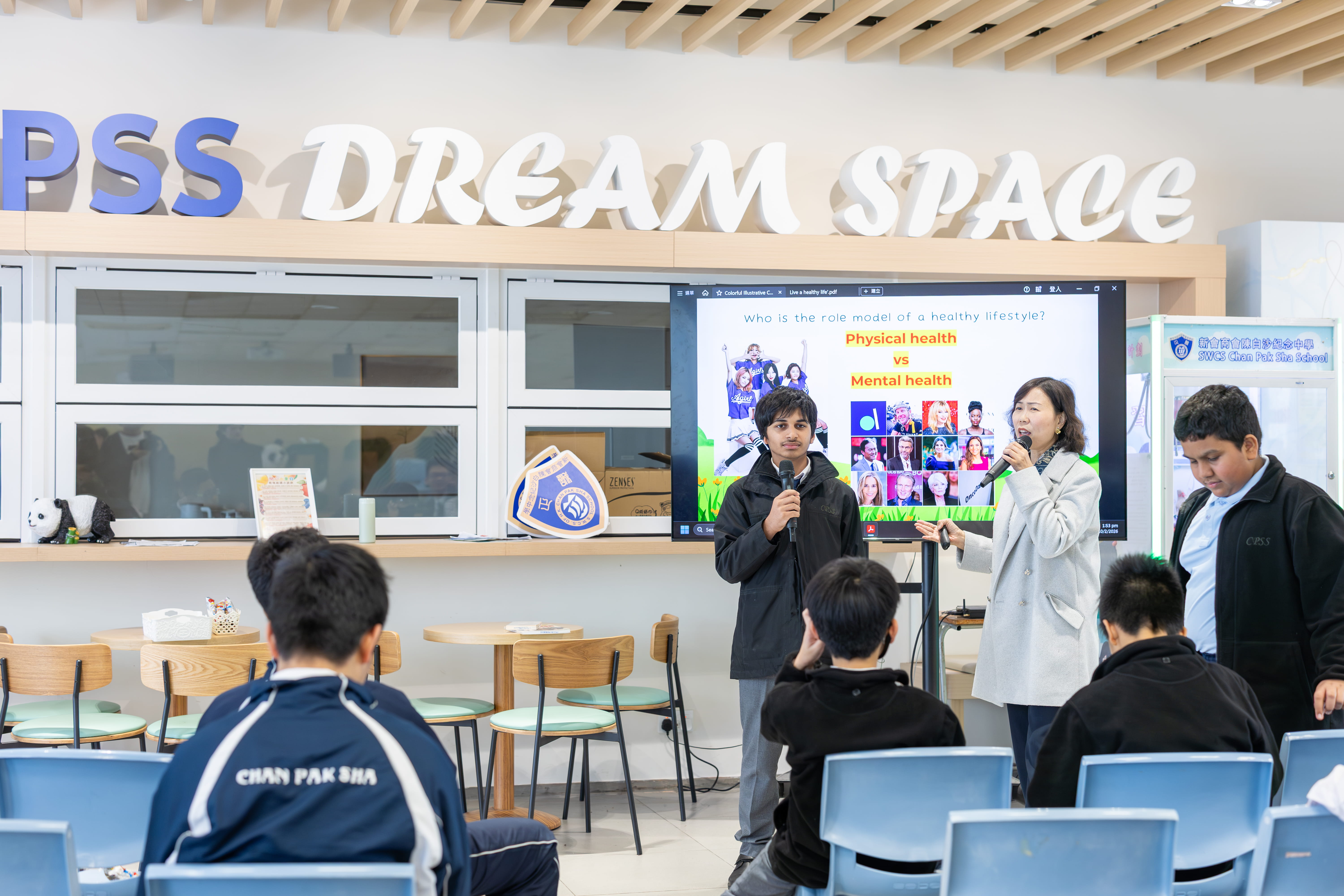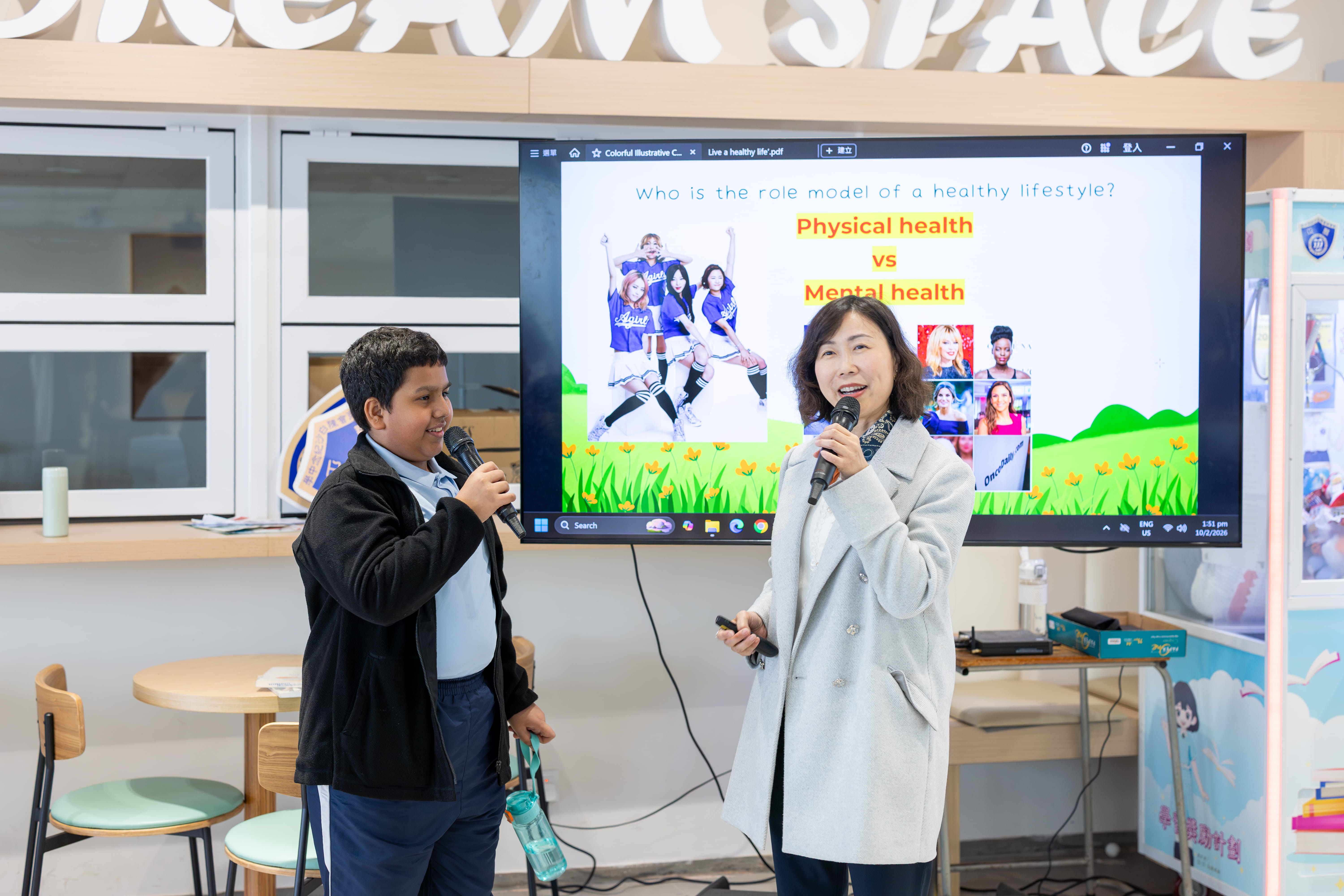 陳校長主持午間好書分享會,以健康為主題,鼓勵同學們探索健康的生活方式。