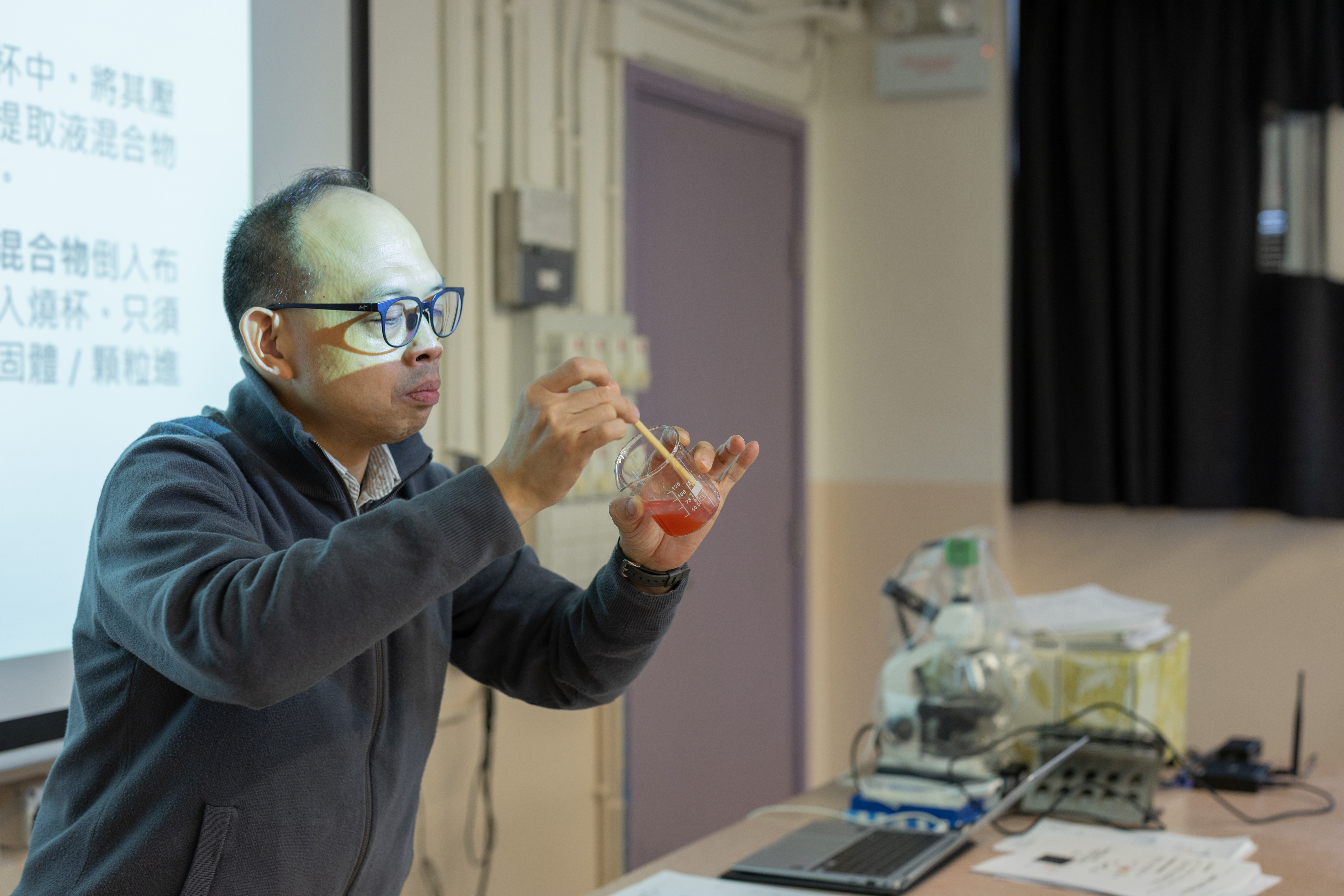 當日活動分組體驗生物、化學、物理三大學科的趣味實驗課程,生物實驗課主題為「遺傳的奧秘──從草莓中提取 DNA」;化學實驗課以「火之實驗──簡單版焰色測試及活潑金屬反應示範」為核心;物理實驗課則聚焦「電之魔術師──范德拉夫起電機」,所有參與者皆順利完成實驗,並獲發證書。