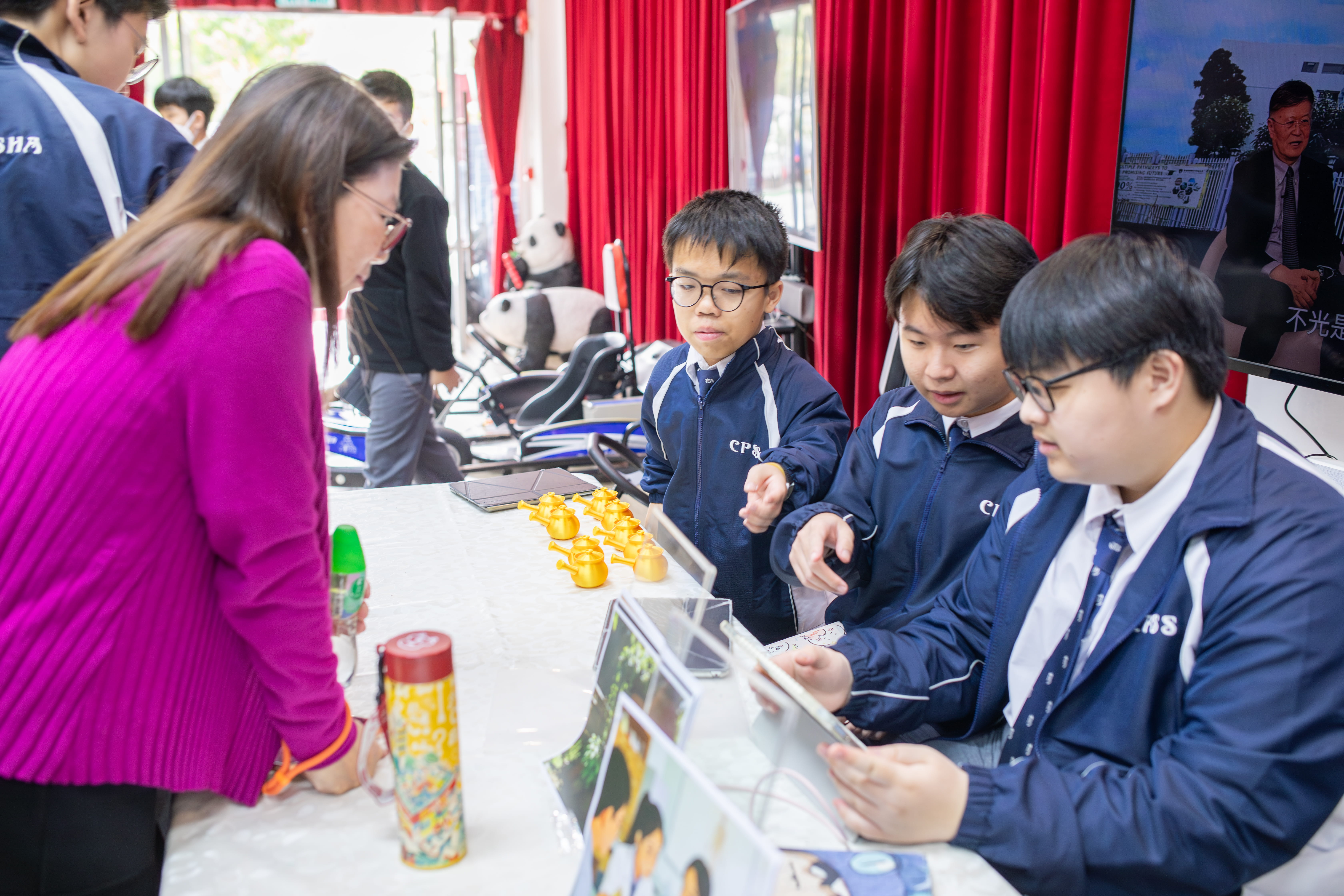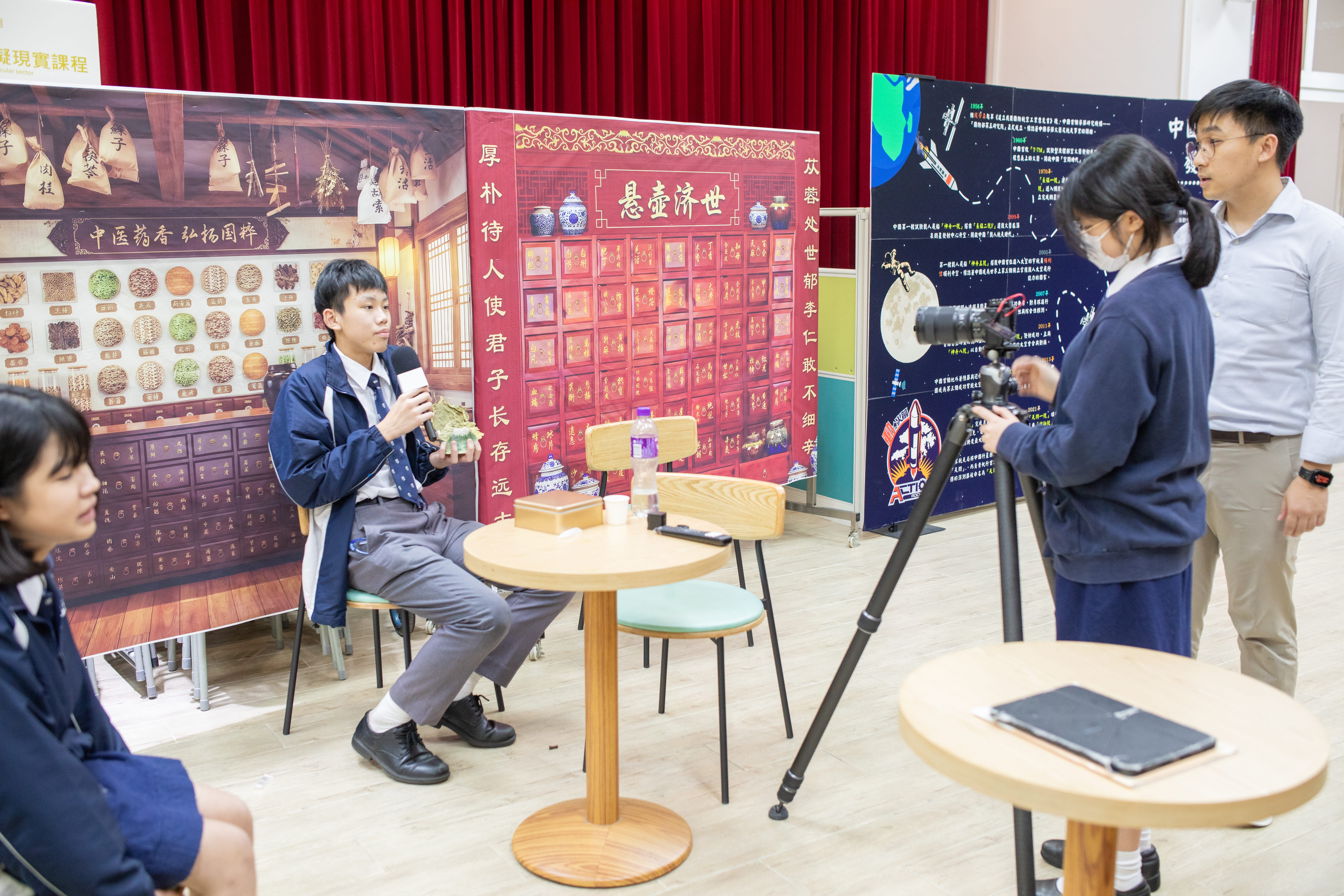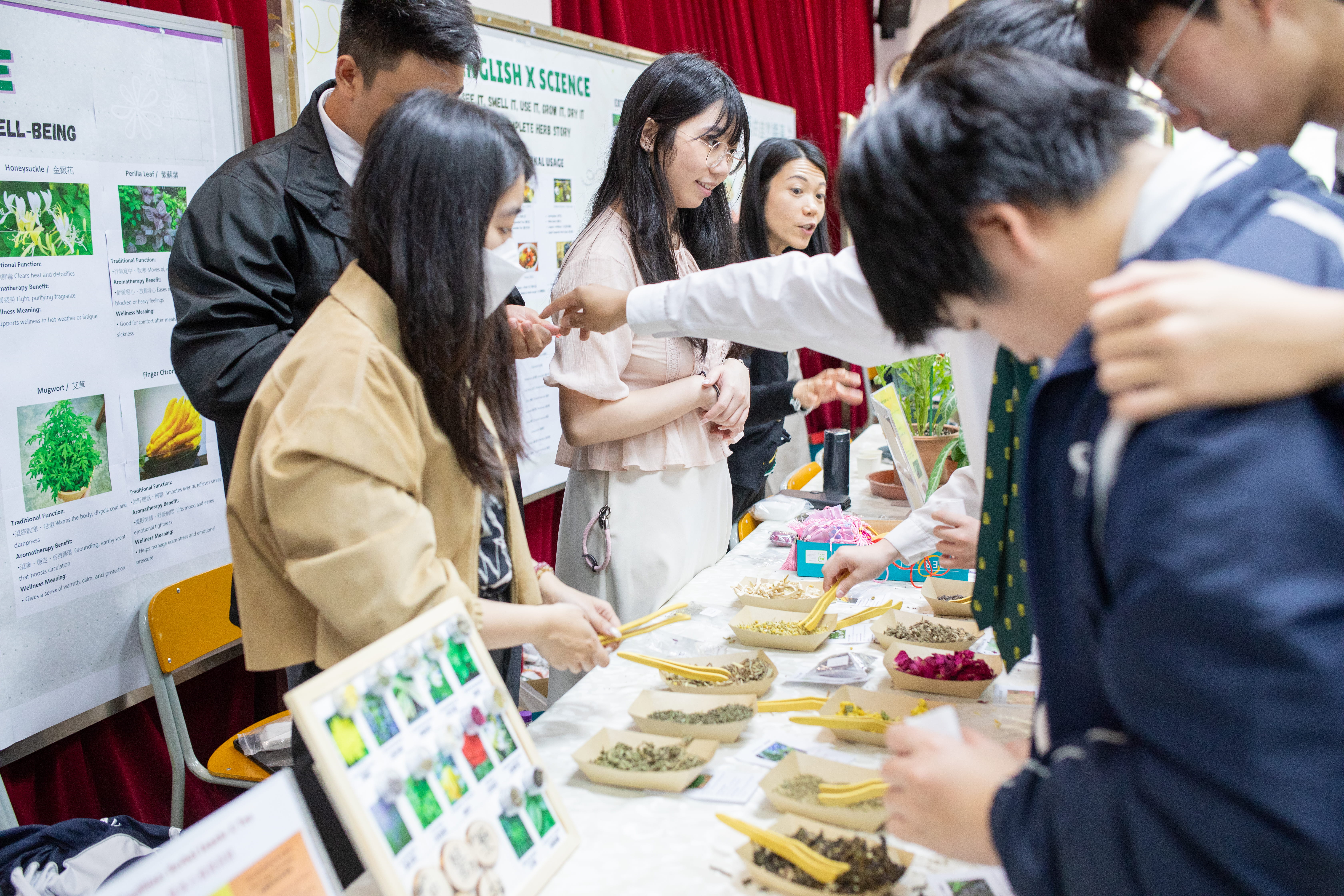 儀式結束後,嘉賓移師眾師堂參觀跨學科學習成果攤位,了解中醫藥如何結合各個科目進行多元學習。是次活動展示了中醫藥與教學的具體成果。