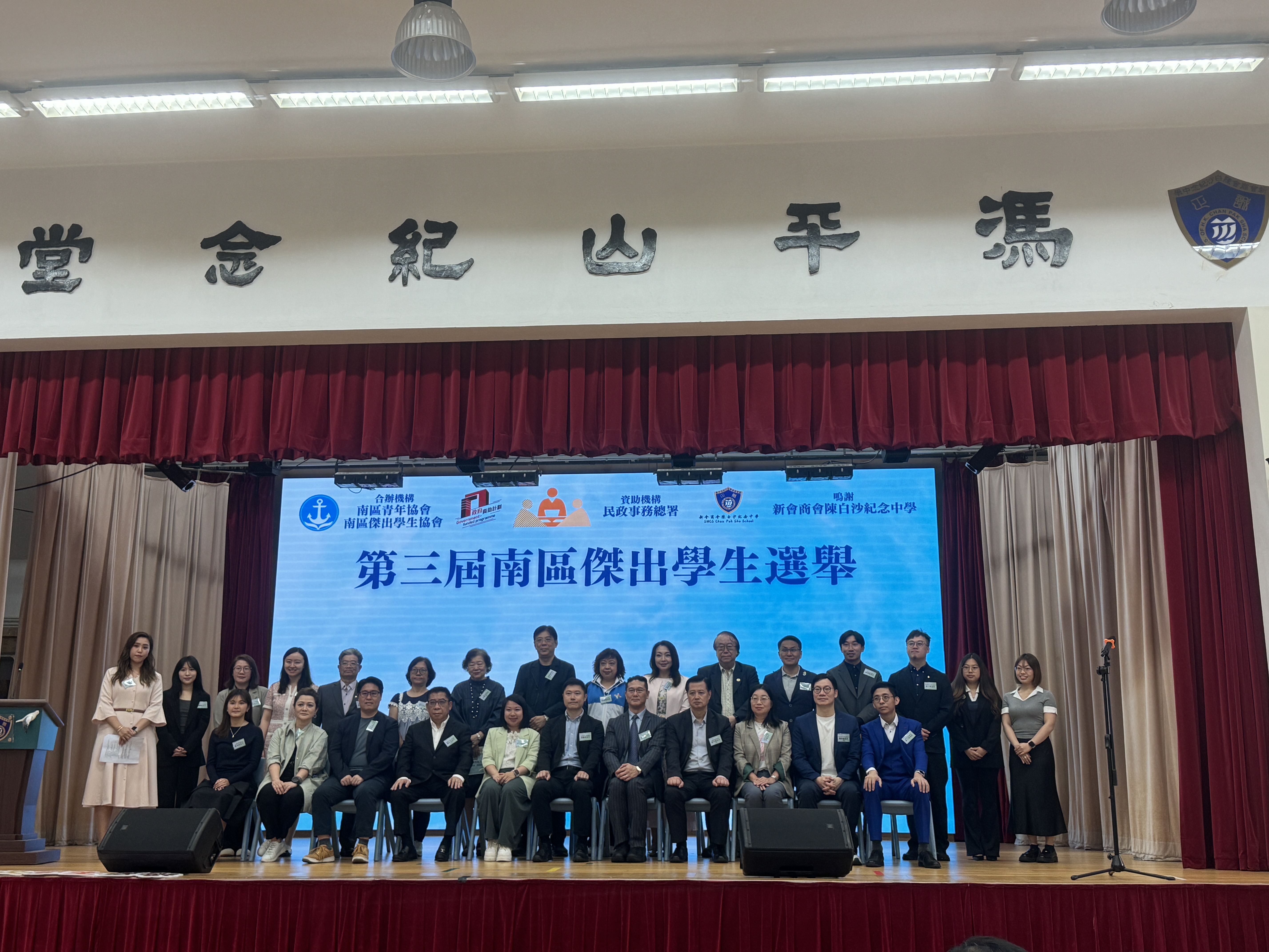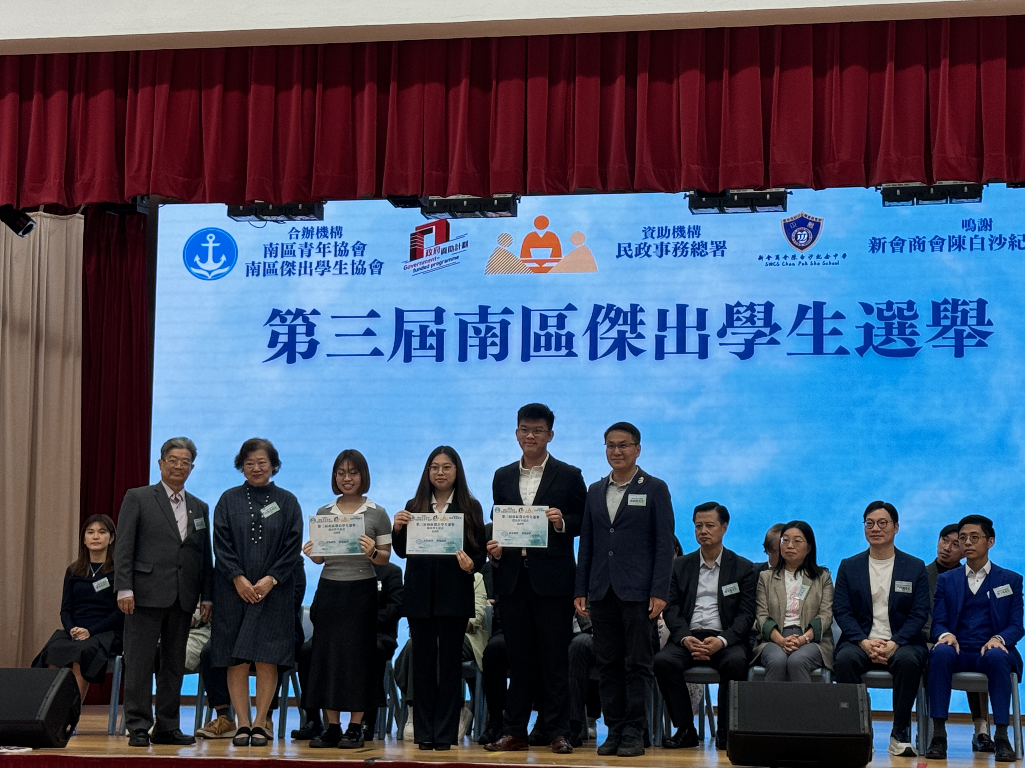 「第三屆南區傑出學生選舉」成果分享會暨閉幕禮已於2026年3月28日假本校禮堂圓滿舉行。本活動由民政事務總署贊助,旨在表揚在學業成就、課外活動及服務社會方面表現傑出的南區學生。