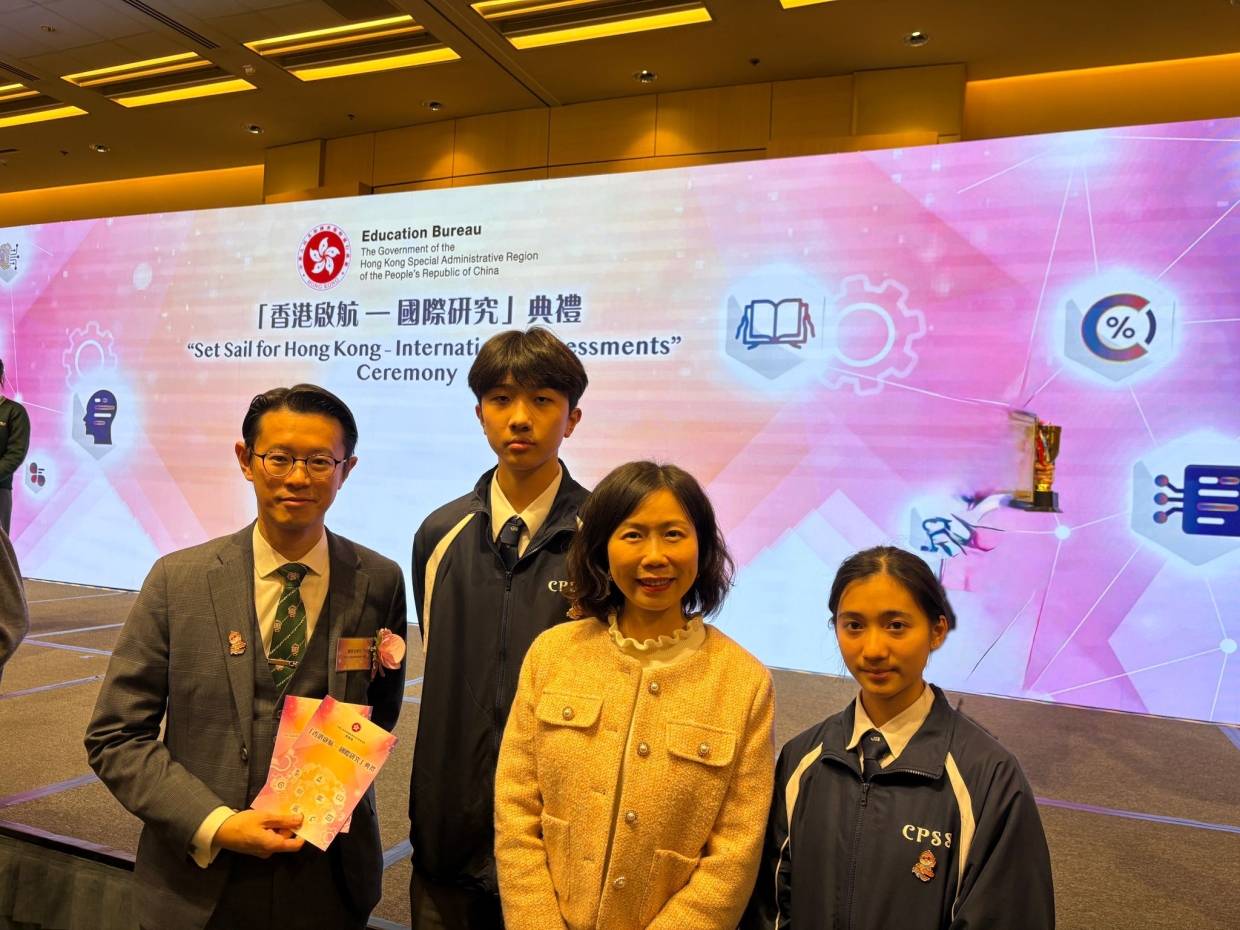 本校35名中三及中四學生參加國際能力PISA測試,評估閱讀、數學和科學的應用能力,其中3A黃佩珊及董翾被挑選為PISA南區學校代表,出席2月27日啟動禮。