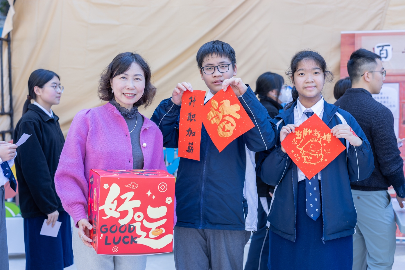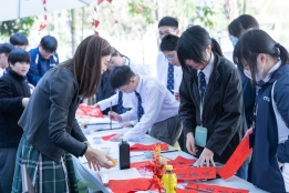 新春將至,為讓學生於課餘放鬆心情,感受中國傳統節日喜慶,中文科於澄心園及眾師堂舉辦了「喜迎新春好年華」活動,設多個攤位遊戲,包括揮春拓印、新春面繪、投壺射箭等,讓學生透過遊戲增加對中華文化的了解;同時準備了哈哈笑口棗、步步高升年糕等賀年小吃。同學踴躍投入,師生同樂,現場氣氛熱鬧,更吸引街坊駐足,喜氣盈盈。