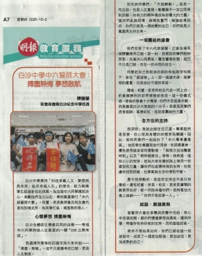 《明報 教育服務專欄》白沙中學中六誓師大會: 搏盡無悔 夢想啟航