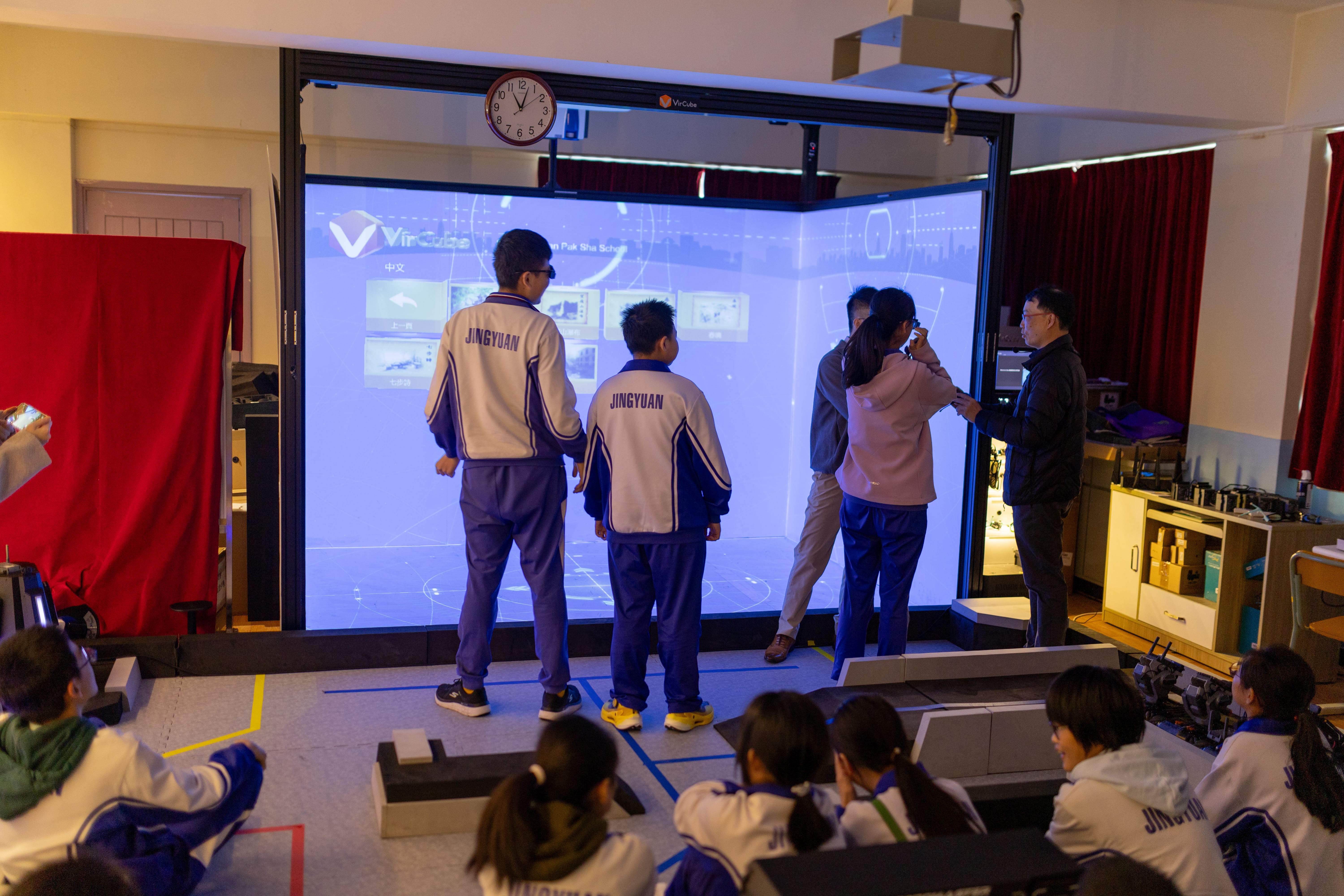 北京教委及北京市京源學校25位學生到訪本校進行交流,同學親身體驗到學校的創科發展、元宇宙學習以及AI狗狗小白的活潑好動。外籍老師Mr. Ash、Ms. Natalie、交流生Julius與學生以英語交談,中國語文科給予同學VR體驗以及介紹價值觀教育。師生非常喜歡本校美麗的校園,到處拍照留念,又到學生餐廳享用茶點和欣賞本校製作的電視節目,可謂眼界大開,收穫豐富。