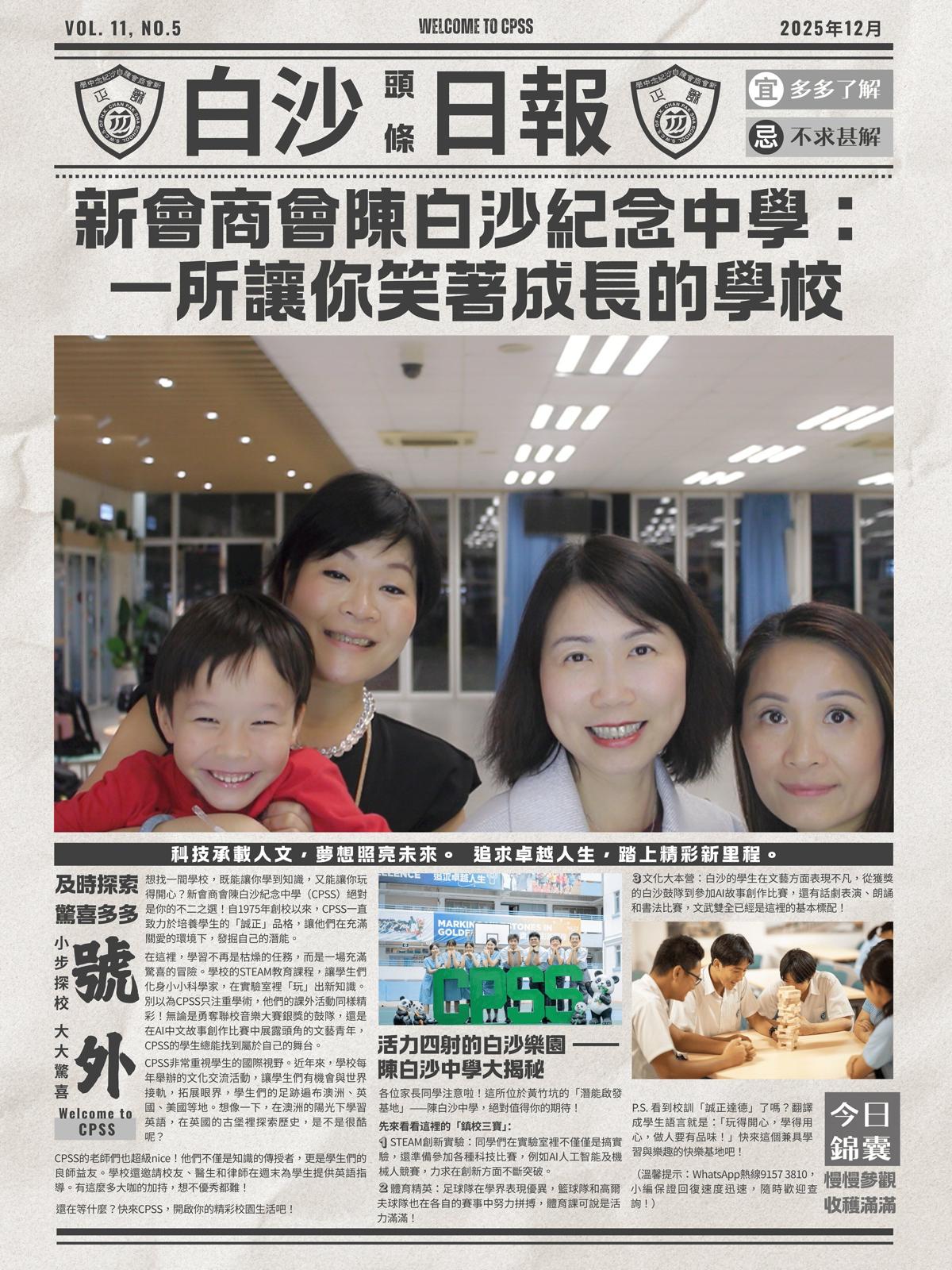 校內近日迎來嶄新打卡熱點!全港第一部學校版報紙機已設置在小禮堂。