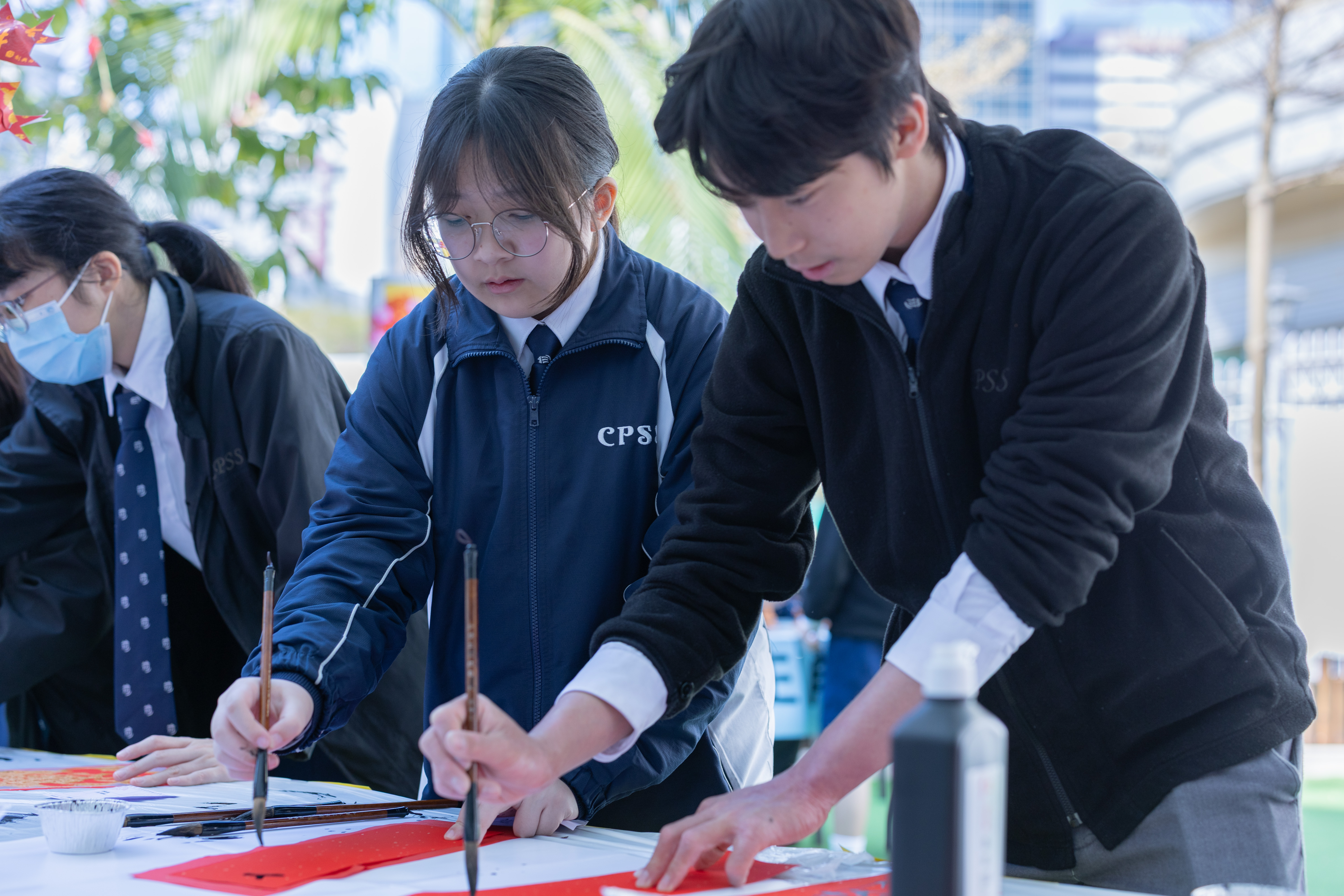 新春將至,為讓學生於課餘放鬆心情,感受中國傳統節日喜慶,中文科於澄心園及眾師堂舉辦了「喜迎新春好年華」活動,設多個攤位遊戲,包括揮春拓印、新春面繪、投壺射箭等,讓學生透過遊戲增加對中華文化的了解;同時準備了哈哈笑口棗、步步高升年糕等賀年小吃。同學踴躍投入,師生同樂,現場氣氛熱鬧,更吸引街坊駐足,喜氣盈盈。