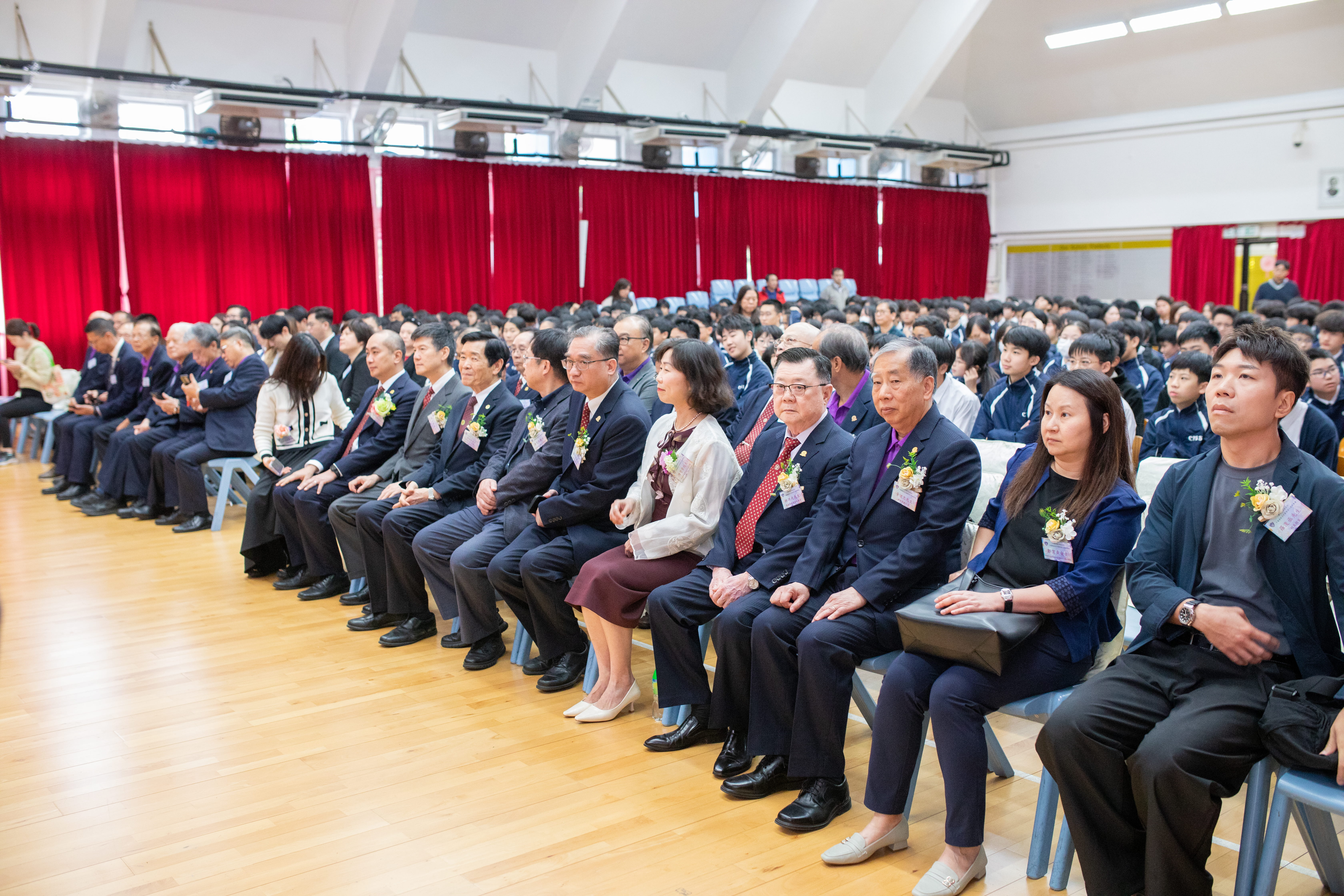 當日來賓雲集,氣氛熱烈,邀得各界人士、教育界同工及多所小學師生共同參與。除了僑港新會商會主席趙子基校監、永遠會長陳鴻基博士 MBE、譚志豪副會長及一眾校董外,更有香港浸會大學中醫藥學院陳虎彪教授、港恩中醫診所陳沛思中醫師、香港仔坊會執行總監鄭潔貞女士、香港南區家長教師會聯會主席劉穎欣女士等親臨,濟濟一堂,共襄盛舉 。