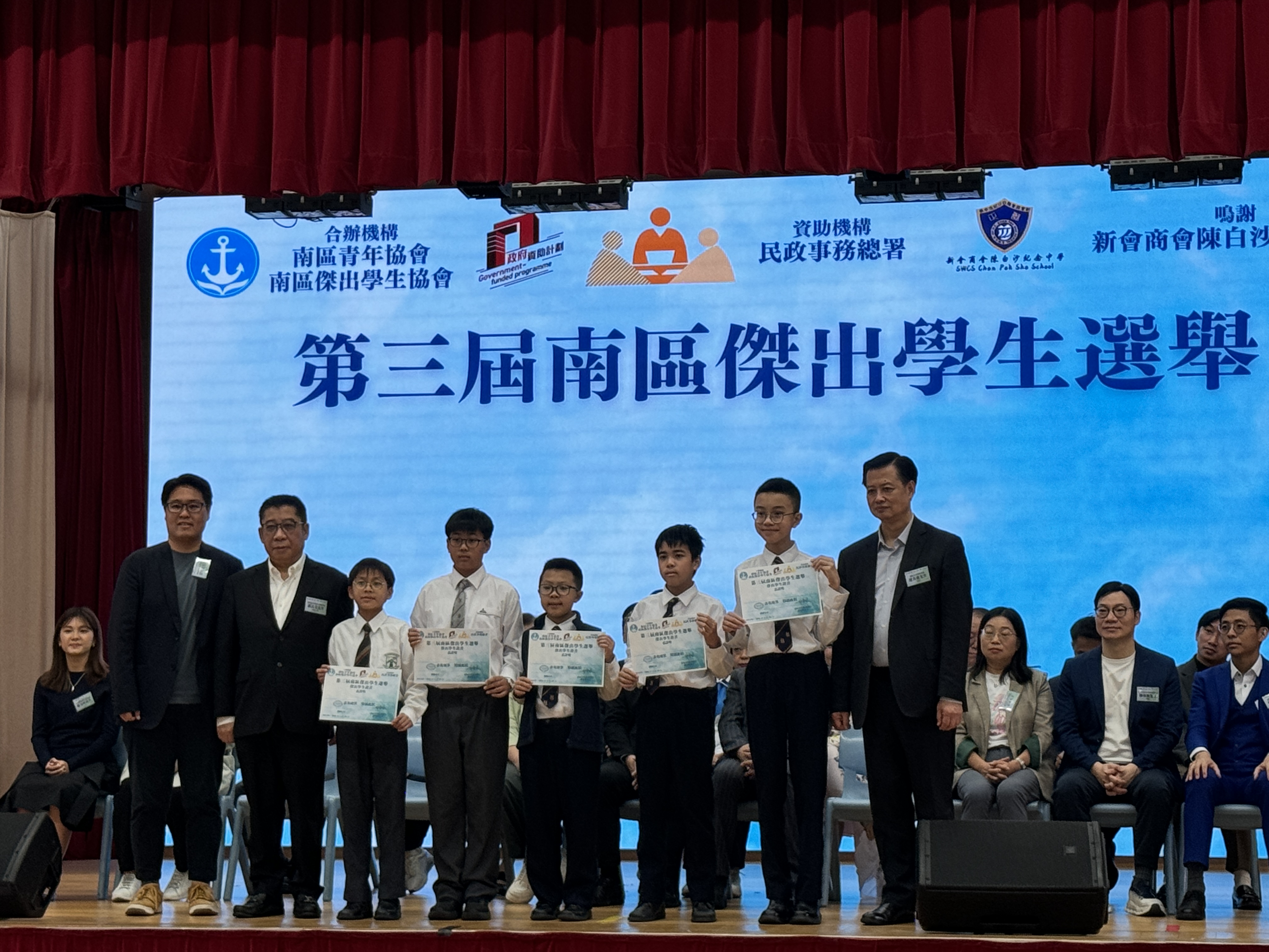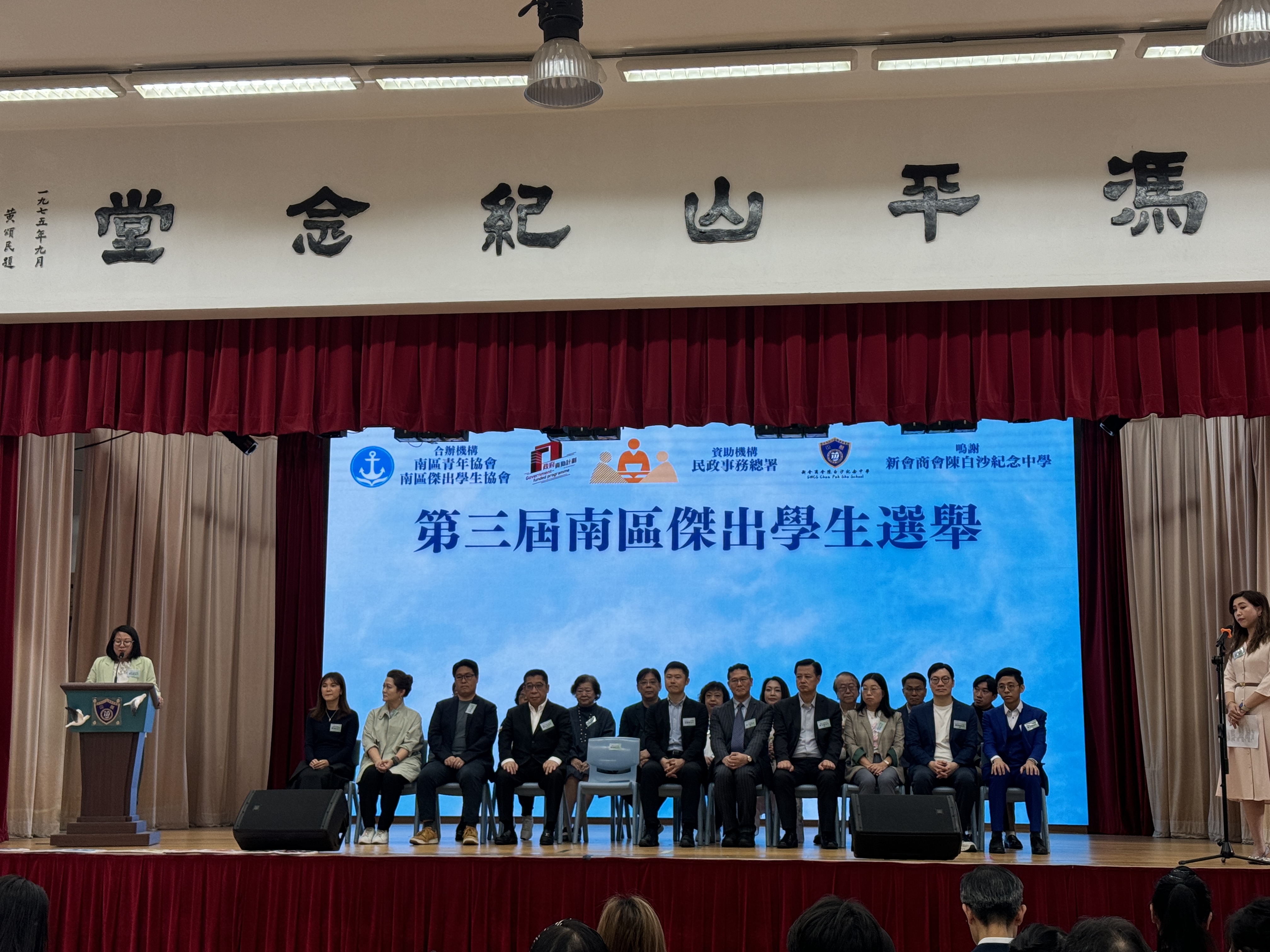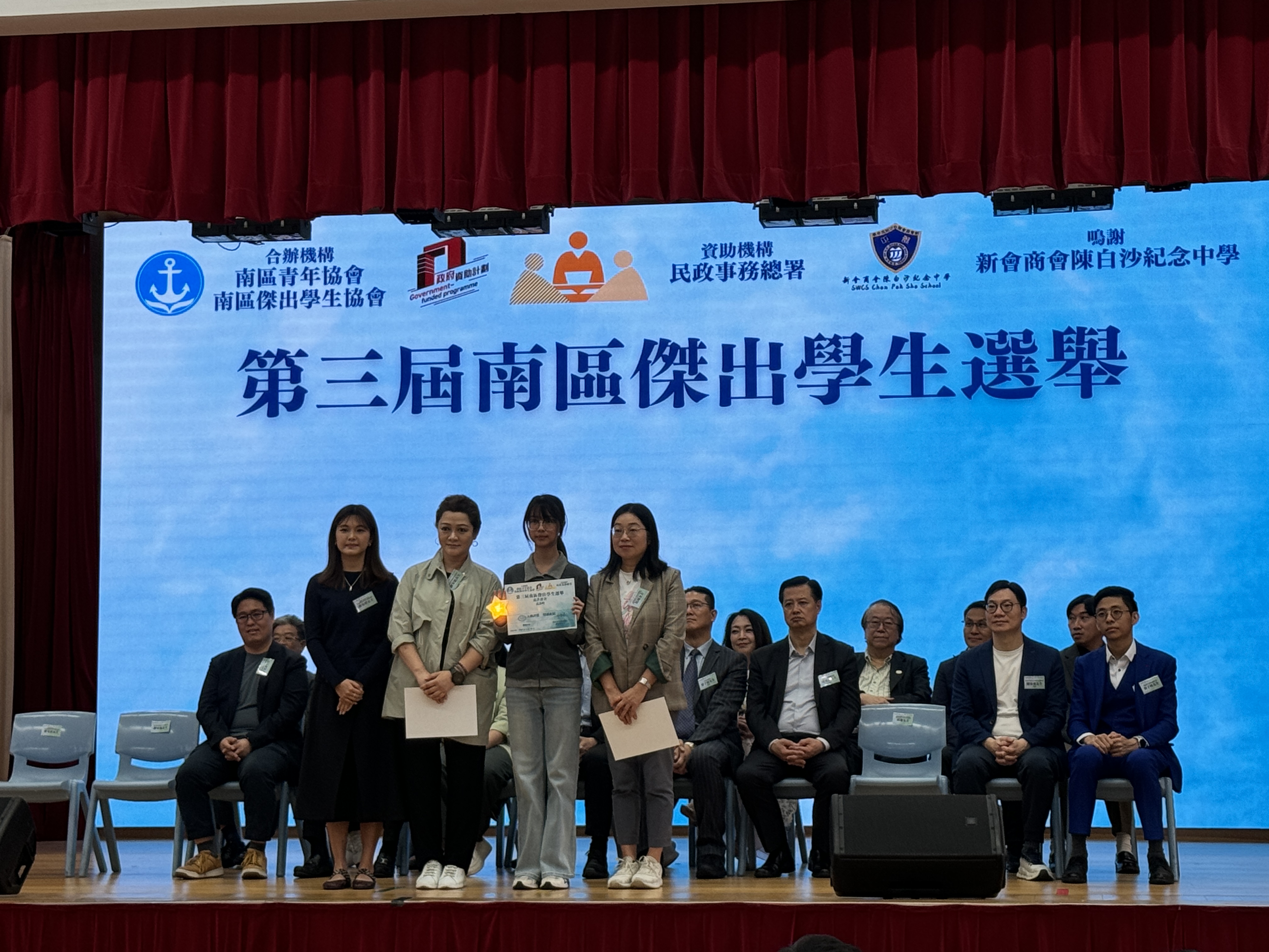 「第三屆南區傑出學生選舉」成果分享會暨閉幕禮已於2026年3月28日假本校禮堂圓滿舉行。本活動由民政事務總署贊助,旨在表揚在學業成就、課外活動及服務社會方面表現傑出的南區學生。