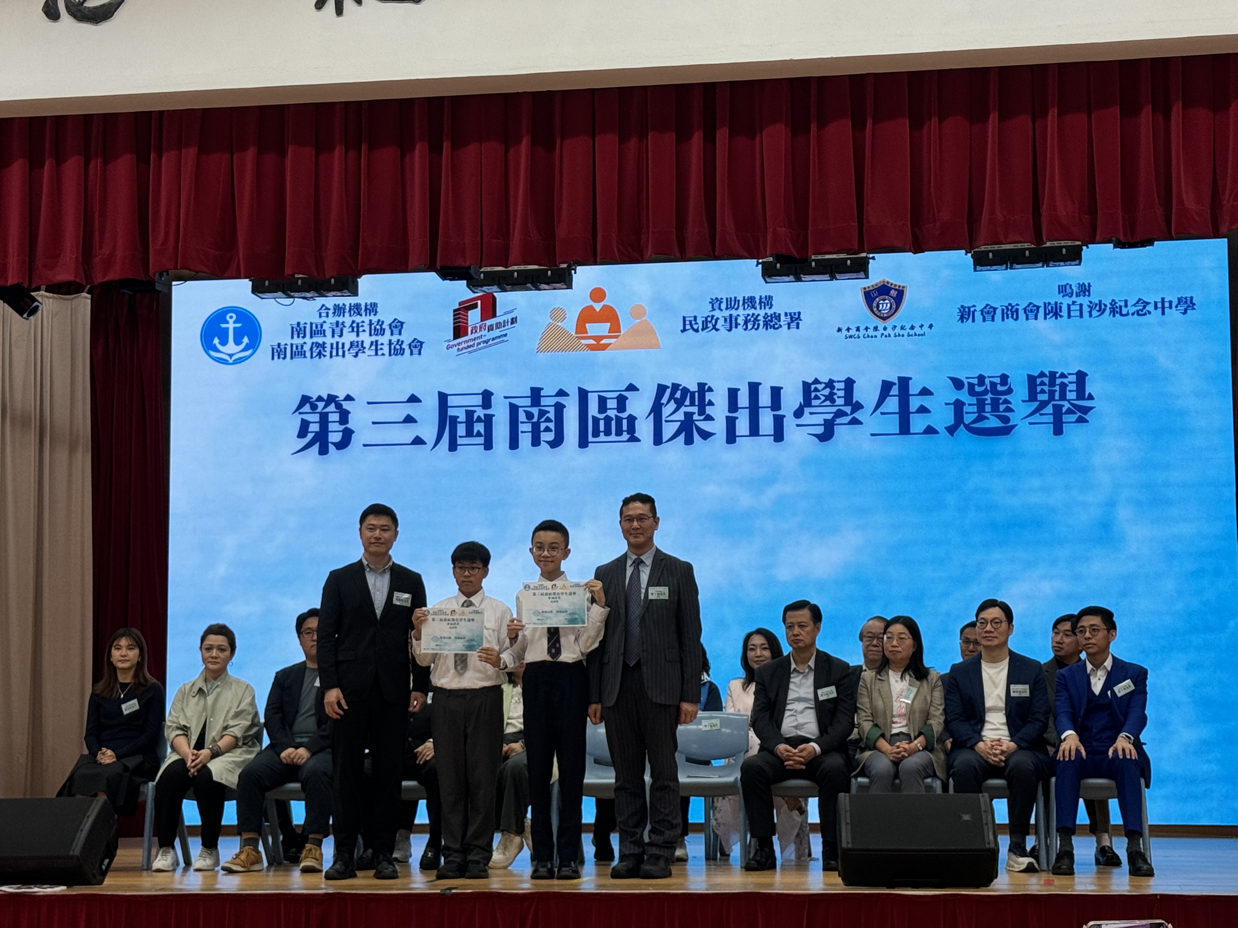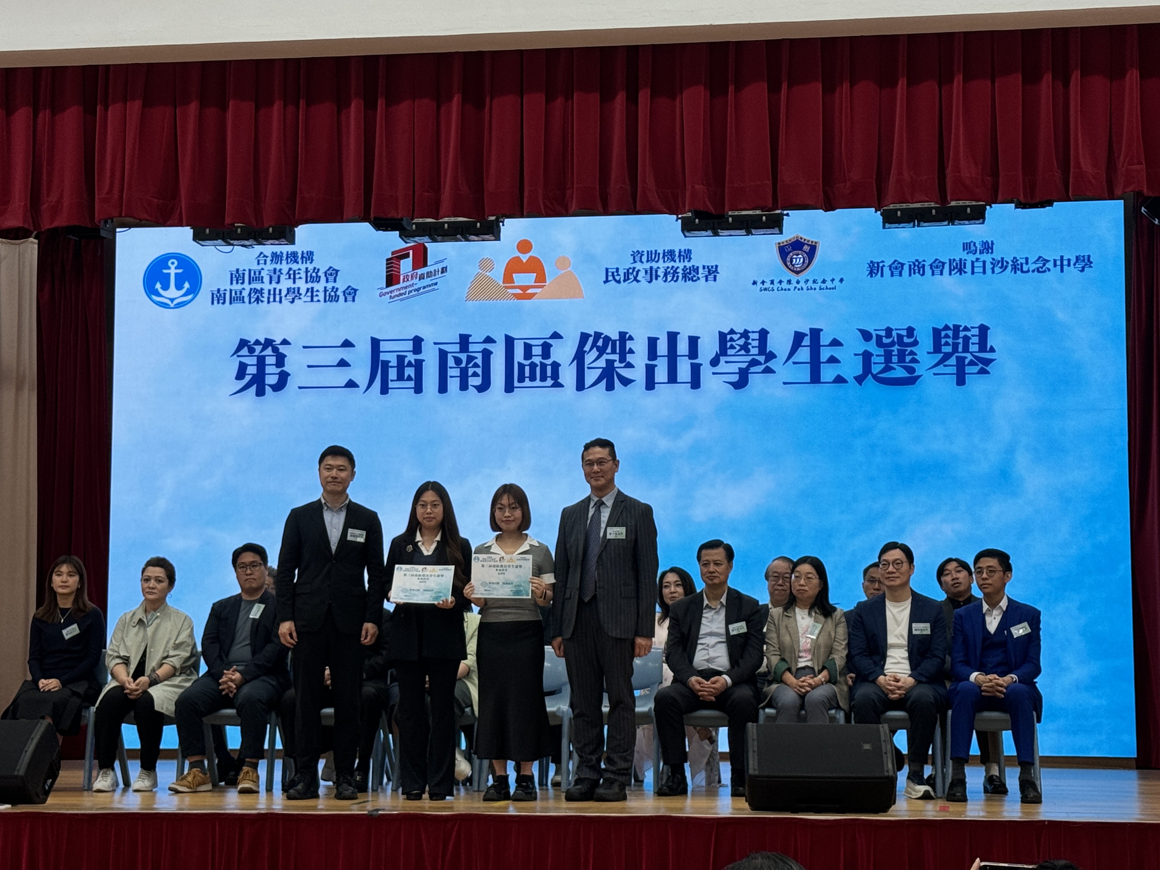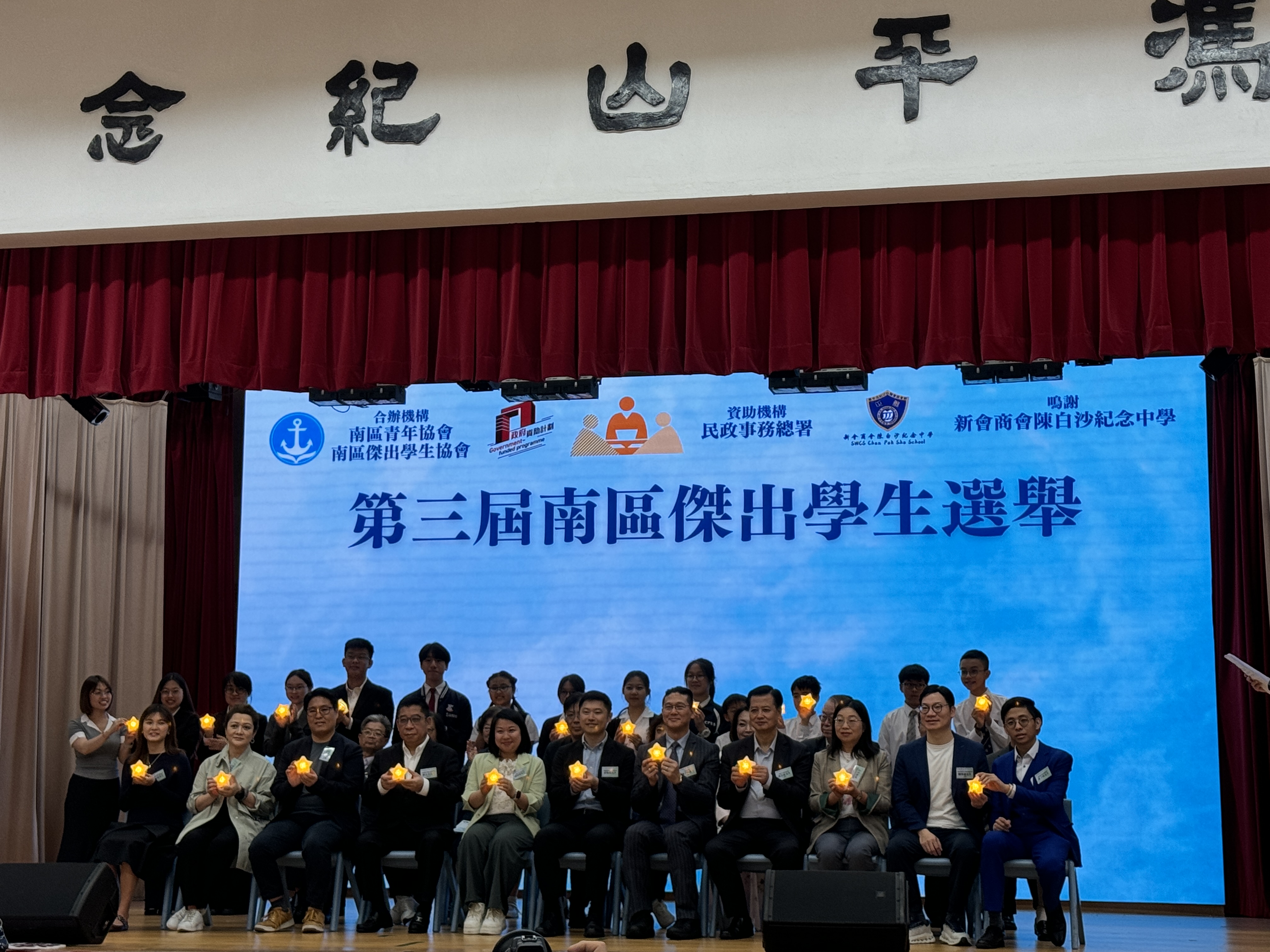 「第三屆南區傑出學生選舉」成果分享會暨閉幕禮已於2026年3月28日假本校禮堂圓滿舉行。本活動由民政事務總署贊助,旨在表揚在學業成就、課外活動及服務社會方面表現傑出的南區學生。