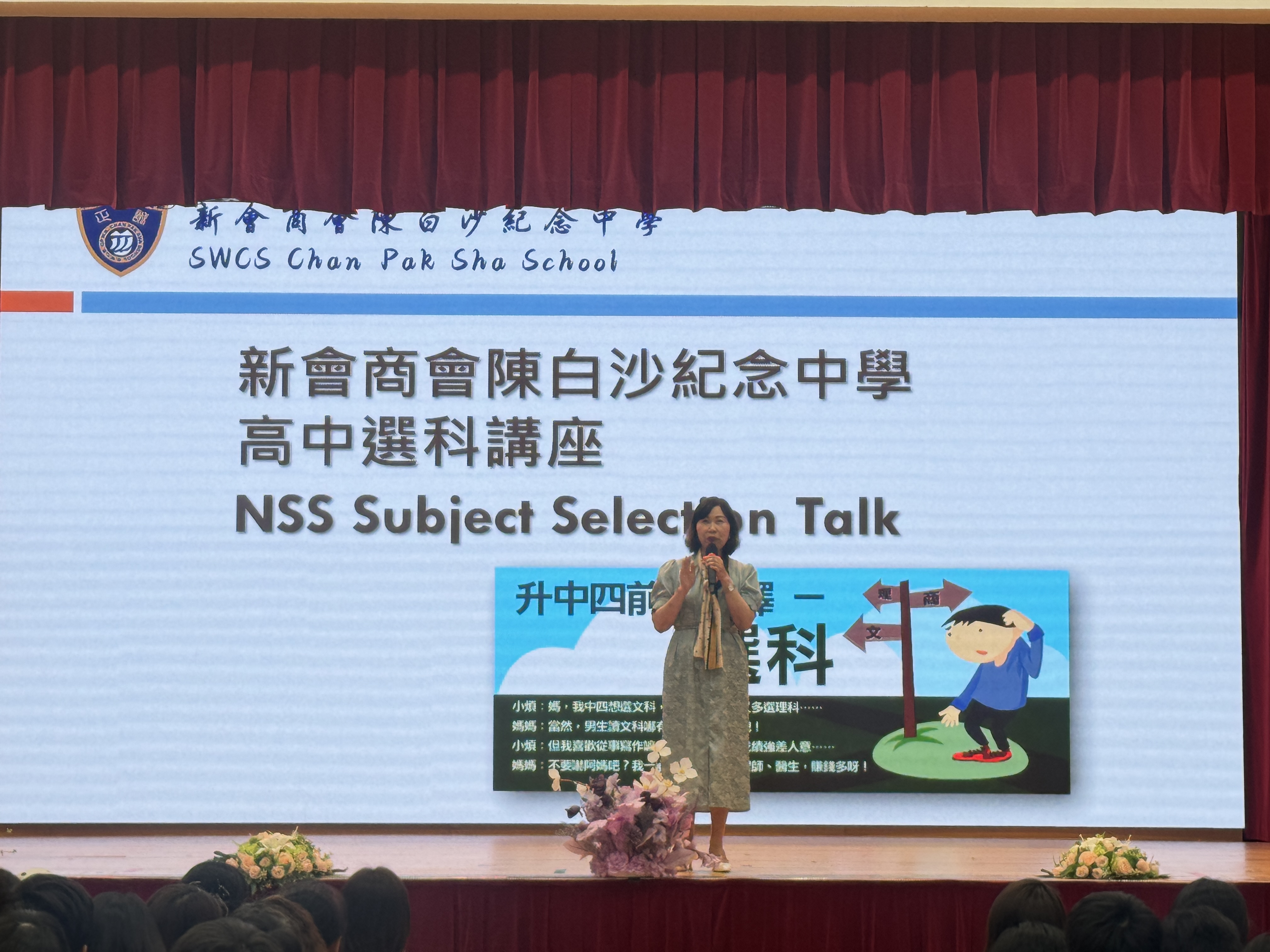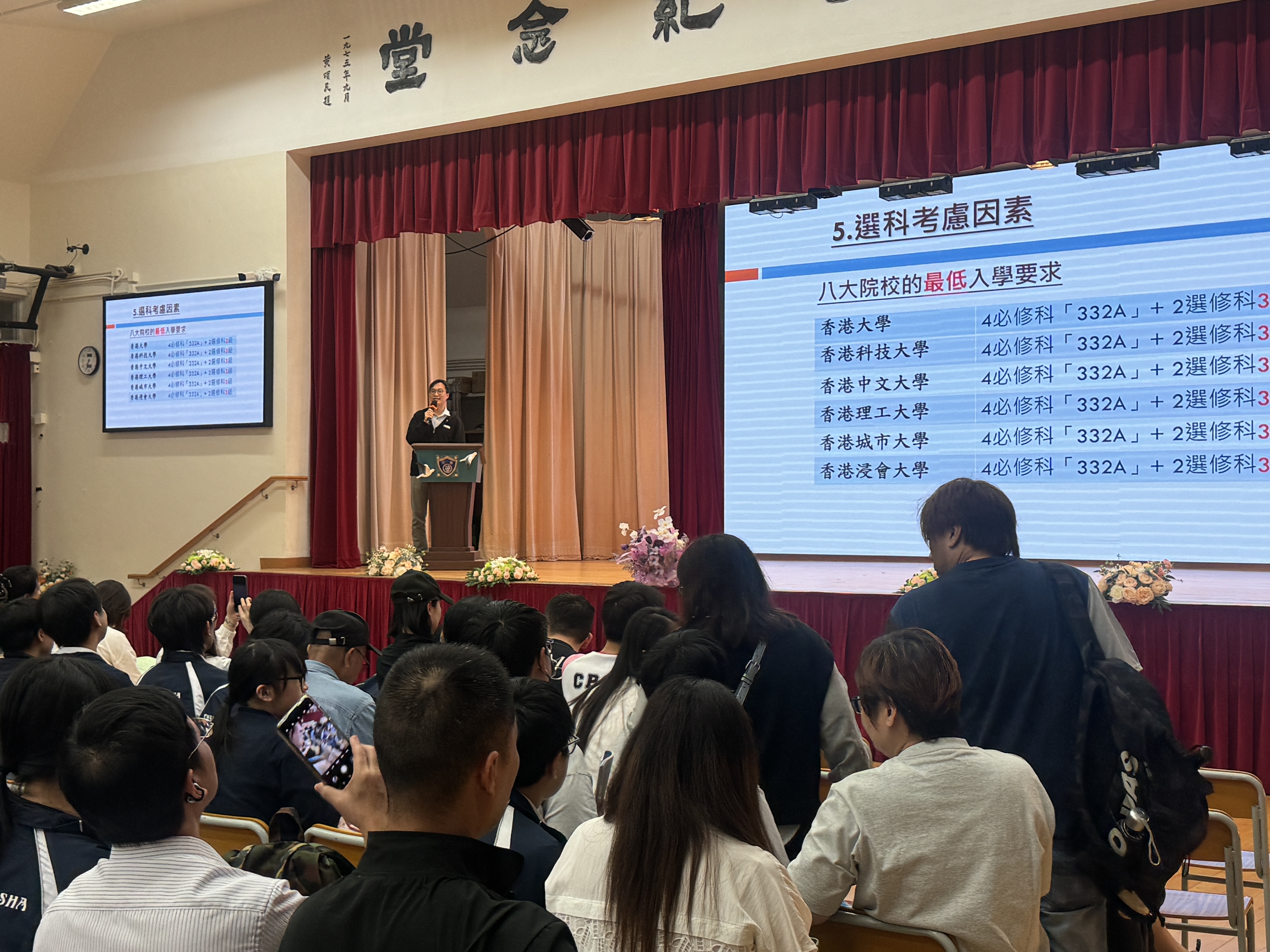 2026年4月17日晚本校舉行中三選科家長晚會,是次晚會邀請所有中二及中三家長及學生參與,並由王名寬助理校長及生涯規劃組老師介紹本校的高中選修學科及應用學習課程,講解選科表填寫須知,以及高中後的出路和升學途徑。